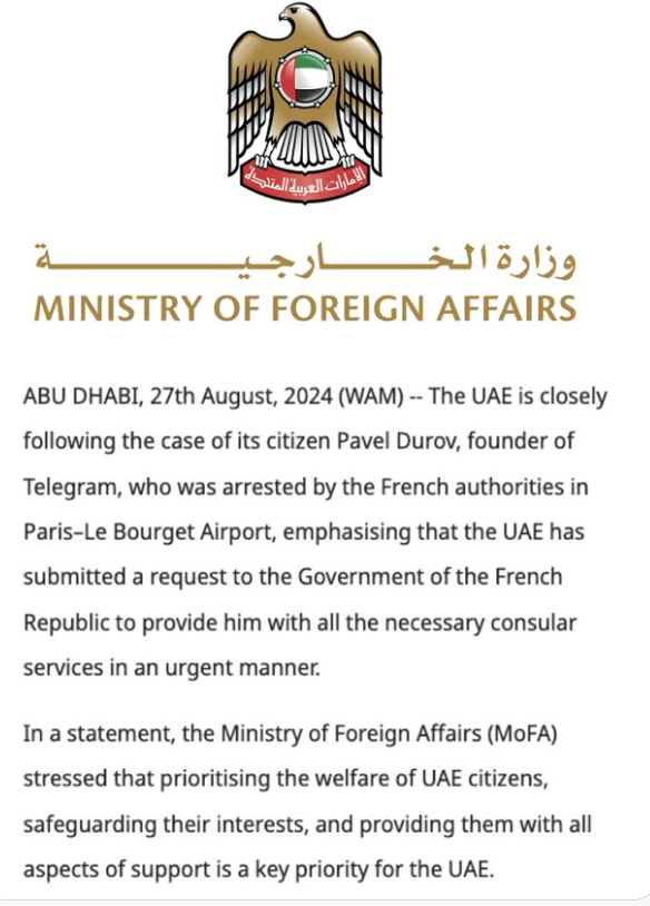 Anyway, Durov, as well as being a citizen of France, holds a passport in the United Arab Emirates. They have now intervened and have allegedly suspended their purchase of French military equipment until the situation is resolved.