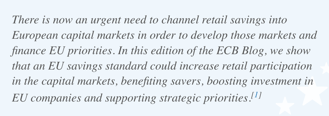 Shall I bang on about financial repression? Perhaps not. This paper makes the case that there is currently no such thing as a European savings product and it would be super-handy for everyone if there was. That way we can spend it on “EU Priorities”. I imagine a slew of tax-free Euro-Savings bonds in the near future.