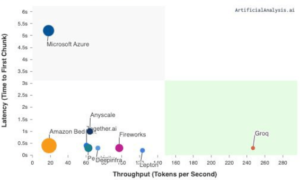 The difference in speed is absolutely incredible, almost an order of magnitude quicker. What this means is we should be able to run these AI models on local machines rather than relying on the intergalactic compute provided by the big US tech firms and that will make all the difference. Groq is almost off the scale in how much faster it is.