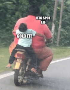 Compare that to Bitcoin ETFs which are 0.08 years old with $37 billion in AUM. It is misleading to say all of that is new because $20 billion sat in the Grayscale Trust at launch. But still, 40% of gold in just over a month.