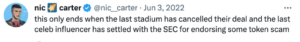 So, nearly 18 months on from this tweet, when the chips were well and truly down, we are nearing the end of quite an ugly period. SBF stole people’s money, his sentence will be long when it comes early next year and it should be. CZ didn’t steal anything but he wasn’t American and he didn’t play by the American rules. Now that has cost him $4.5 billion dollars, his job and possibly some of his free time in 2024.