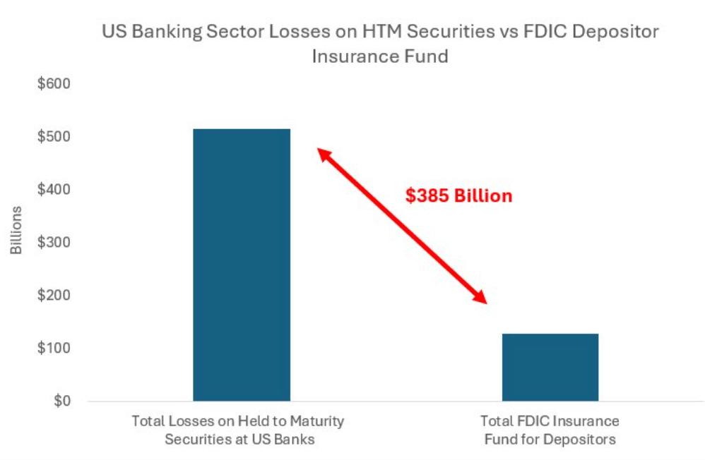 Without these internal bailouts and Held to Maturity pretend valuations, the bond market would convulse. US yields would be closer to 10% than 5%. You can only pull the trick for so long, as we are beginning to see.