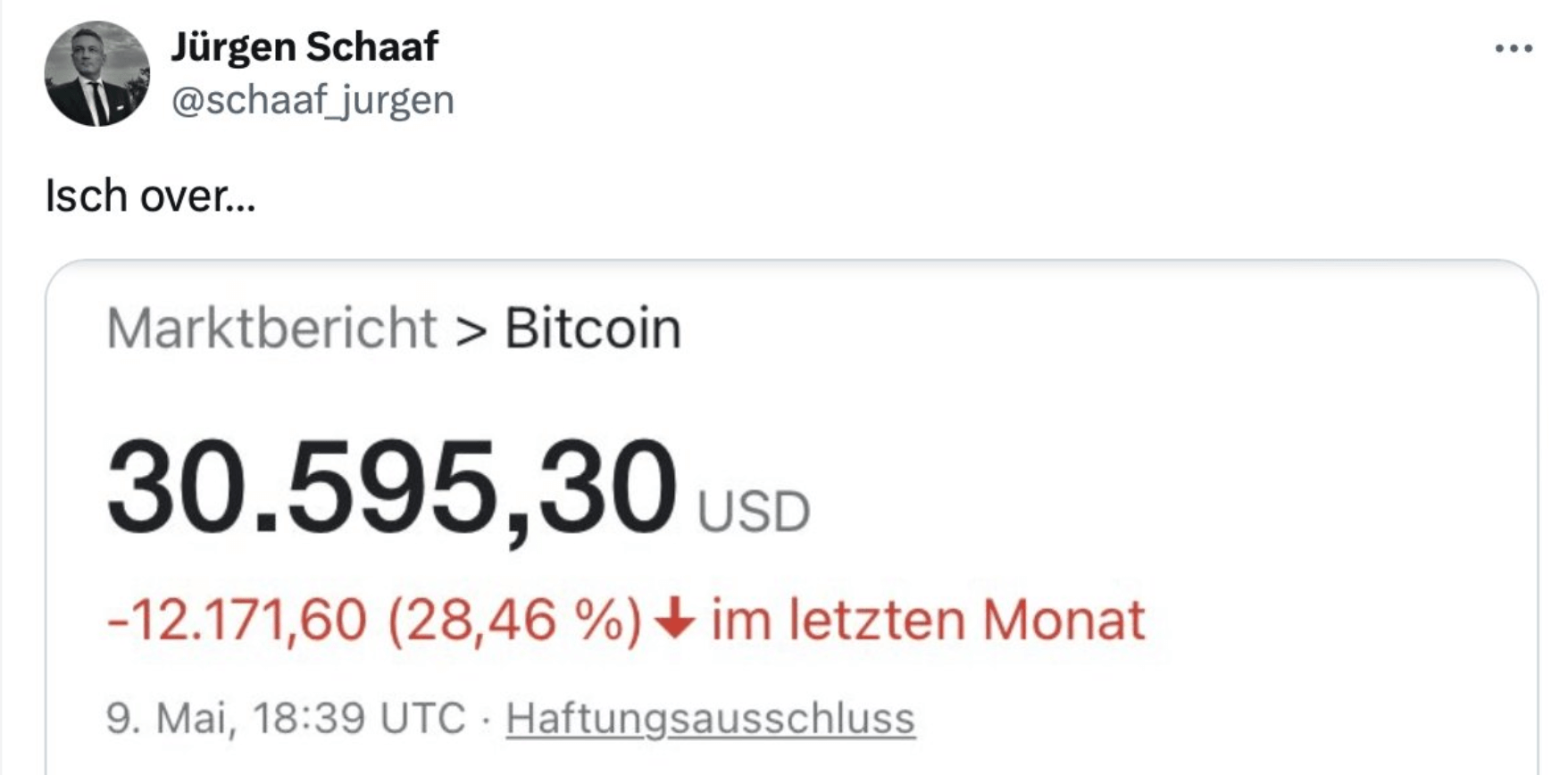 Schaaf really hates bitcoin. His 2022 message when we were reeling from the FTX collapse said everything. “Isch over…” he claimed.