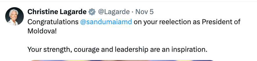 In 2024, the only election cheer she could muster in US election week was for the President of Moldova.