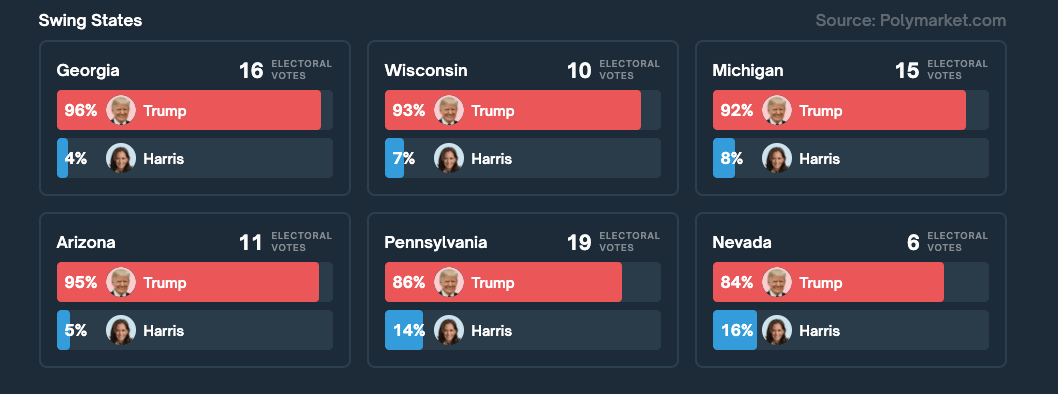 Bitcoin traded throughout the count when all other markets were closed. It front-ran the result by hours. The blockchain prediction app accurately predicted the outcome. Importantly, you cannot have an opinion on Polymarket unless you pay and you can only pay in stable coins. Contrast that with the mainstream media where there is a never ending queue of people who incur no cost to be a talking head. They take no risk, simply vocalising to placate their own constituency.