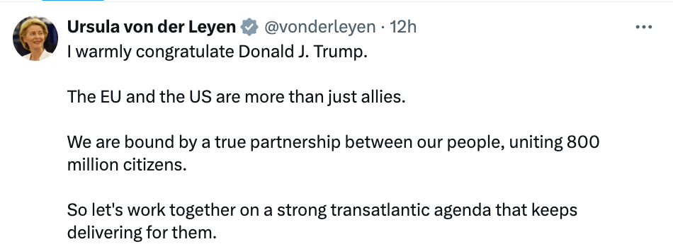 We can absolutely say that this is a total disaster for the EU. The fight with US Tech is about to get much more aggressive with the backing of the President Elect and the shadow of Elon Musk looming over the administration. Europe’s enemy number one.