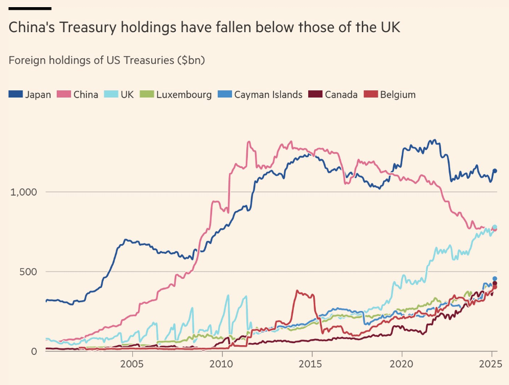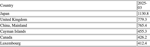 Even so, the official numbers tell us that China dumped treasuries in March, it worked. Trump panicked and backed off on tariffs and will likely keep back off until a deal is done. The other dynamic is the maturity of the Chinese holdings. They are now very much skewed to the short end which allows their exposure to the US to run-off quickly without causing diplomatic drama. It also explains why US debt at 10 years and longer is skirting with 5% yield.