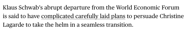 “Carefully laid plans”, I’m sure. In fact, everything the WEF does or attempts to do is a carefully laid plan. I am a little bit disappointed with the allegations against Schwab though. After so long at the helm there were bound to be chinks in his armour. The Wall Street Journal reported the following, allegedly included in a letter from an internal whistleblower: