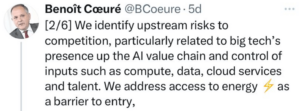 Now he is complaining that one of the barriers to entry is lack of access to energy. Of course, again, this is absolutely true. AI data centres consume huge amounts of power (which is why we no longer hear so much about bitcoin doing the same).