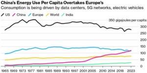 The fact is Europe (although not France) has turned off many of its nuclear reactors in an act of economic suicide. Now they realise you cannot run the technology of the current century without an awful lot of power. China has now surpassed Europe, not only in total power (they went past that decades ago) but in power per capita.