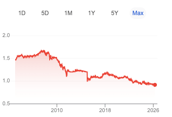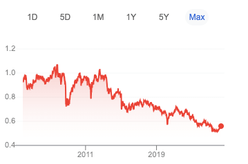 Faring slightly better, the Euro, losing about 40% over the same period. That loss rate is just not high enough though. The ECB needs to print a lot more Euros to keep up with the likes of Australia with its debt funded property boom. They need to lift their game and I’m sure they will.