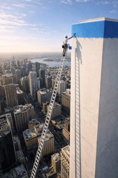 He’s at 400 feet painting a wall and holding his certificate of working at heights. Big tick. This is compliant behaviour because he has his licence.