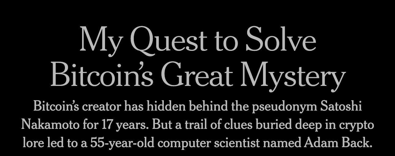 The New York Times published a new “exposé” on the identity of Bitcoin’s creator. It’s long and interesting because it contains lots of details about the history of Bitcoin’s creation and release.