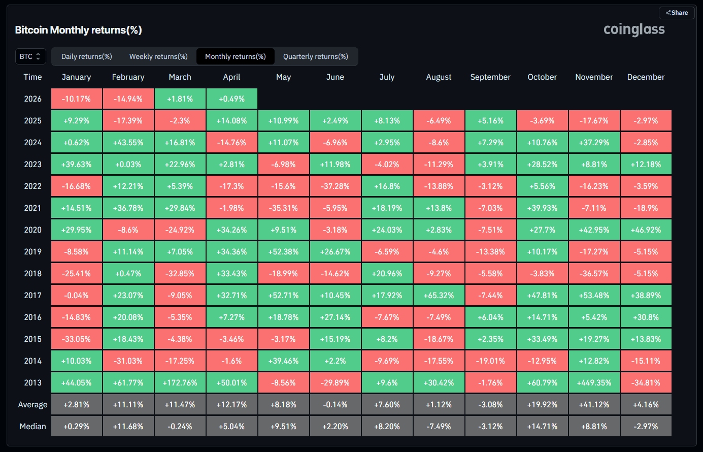 I was musing on this chart after a very marginally positive month in April for Bitcoin.