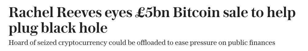“Bitcoin bails out the UK” was not a headline I expected to see quite yet. Should it go ahead, the sale is likely to go down in history alongside Gordon Brown’s memorable decision in 1999 to sell 500 tonnes of Britain’s gold for $275/oz. That gold is now worth $40 billion and Gordon sold it for $2.5 billion.