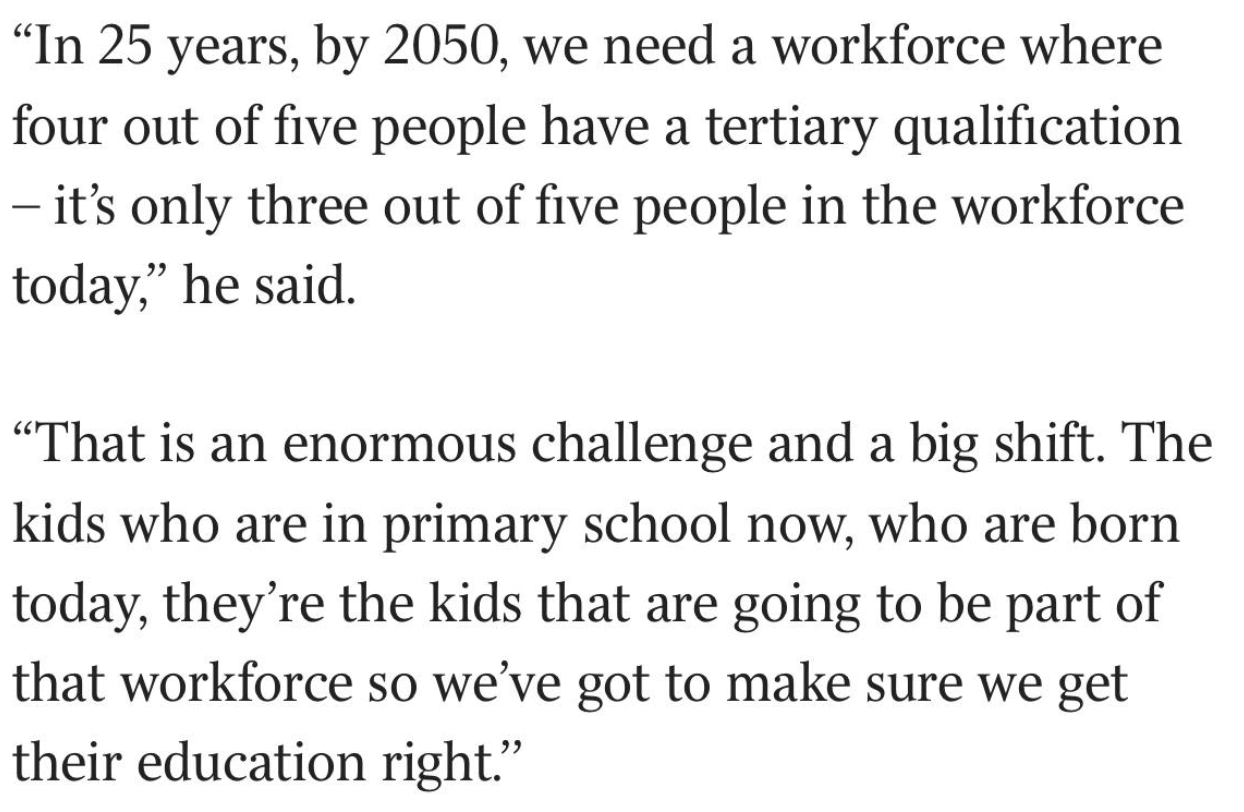 We seem to be in total denial about it though. Australia’s Federal Education Minister had this to say this week: