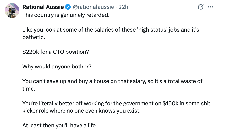 “you’re literally better off working for the government on $150k in some shit kicker role where no one even knows you exist”.