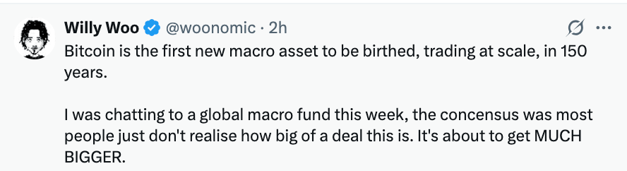 The slow price climb continues. I’ve written about the scale of the psychological barrier that is $100k before. Back in February “it will take time”