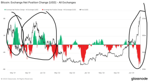 Why? Firstly I would suggest that the ETFs are not buying from exchanges but rather OTC desks and others and it is that OTC demand draining the available supply on the exchanges. Secondly, I continue to believe not much has happened yet. Arguably we have only just recovered from the FTX debacle. The halving is in 35 days, while the US government adds $1 trillion in debt every 100 days.