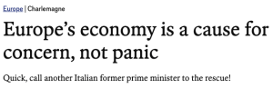 “Concern” says the Economist. The paywalled article here makes a reasonable case that while US GDP has soared and EU GDP has gone nowhere the per capita differences are not so marked. Even then, there is more to it.