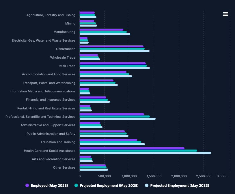 The Australian Government’s labour market survey takes a different view. Every single category of worker is projected to increase in the next five and then the next ten years. Seems unlikely, but you never know.
