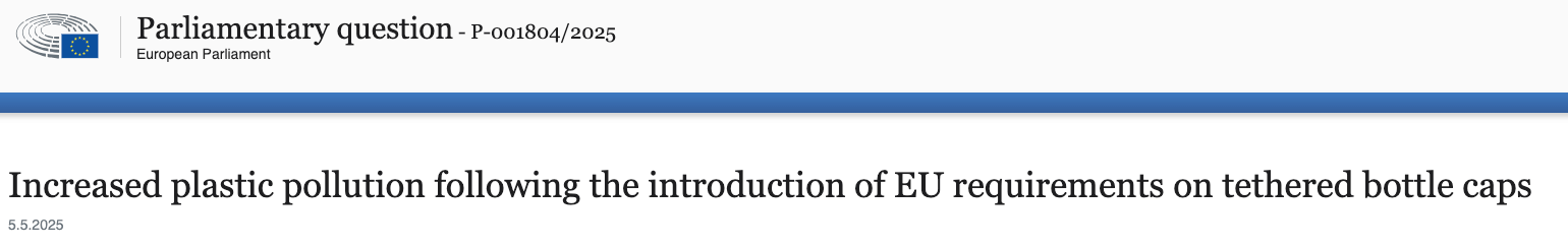 Oh dear. In a written question to the European parliament about bottle tops, it appears that bottle top pollution has risen as a result of the tethering requirement. The explanation is that Europeans are simply expressing their frustration with the insanity of it all by ripping off the caps and throwing them to the ground in furious anger.