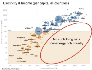 The fact is, if we are to become wealthier we need to consume more energy. There is no other way, energy consumption mirrors GDP growth. As Germany is finding out, if you kill off your energy by turning off your nuclear power stations, then you kill your economy. They are now in recession.