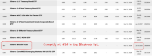 BlackRock’s list of ETFs can be found on their website. The Bitcoin Trust now sits at #36 in their list with $18 billion under management. Look at the ETFs around it, they are a decade old (or more) in most cases. To get in the top 10 they need $75 billion in AUM (4x from where we are). Top spot has $450 billion in AUM, the S&P 500 tracker.