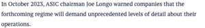 I find it strange that Australia’s leading regulator is so happy about this “unprecedented level of detail”. As a shareholder that is most likely not what I want. I want management focused on whatever it is I actually employ them to do.