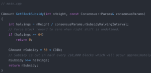From the 20th April, that reward for miners will drop to 3.125 bitcoins per block, or 450 daily. This was coded into the software from the very start, resulting in a monetary policy for bitcoin that is just six lines of code long.