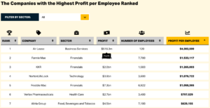 Looking at the website of profit per employee Goldman (45th) and Morgan Stanley (71st) don’t really register. Apple is 20th, Google 31st.
