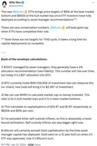 That aside, we now have the two most powerful economies in the world vying for investor access to bitcoin and ethereum. I consider that a significant positive and although we don’t really go in for price predictions, here’s Willy Woo (our favourite analyst of years gone by) echoing my comments from some weeks ago about the gold market cap being a reasonable target for bitcoin over the next 5-7 years. As with all price predictions, he will be wrong, but directionally I believe he is right.