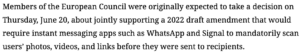 You can imagine the technical honeypot this would create. A database of all messages sent by Europeans, which inevitably one day would be hacked or leaked leading to unknown catastrophe. The full story is laid out here.