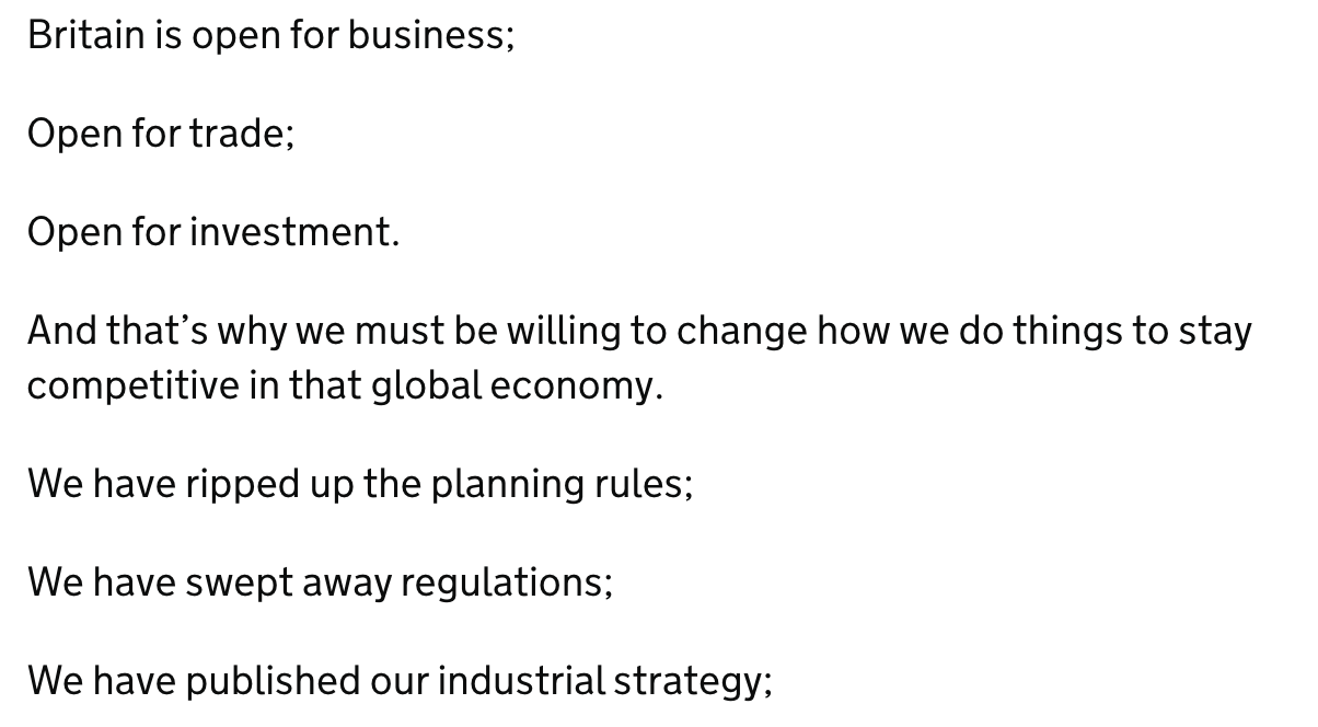 Incidentally, the industrial strategy document (published in June) is most odd. I only bothered with the executive summary, but everything listed in there are the things they have legislated against (cheap power, innovation, less regulation, efficient tax system). It’s entirely performative.