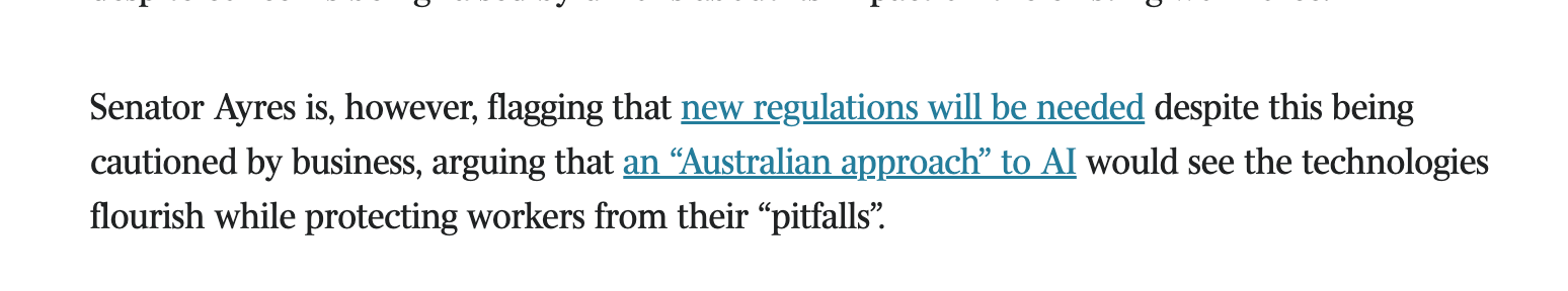 I was glad to see Senator Ayres taking a positive stance on AI. I did browse through his career history and concluded that he would almost certainly know what he’s talking about.