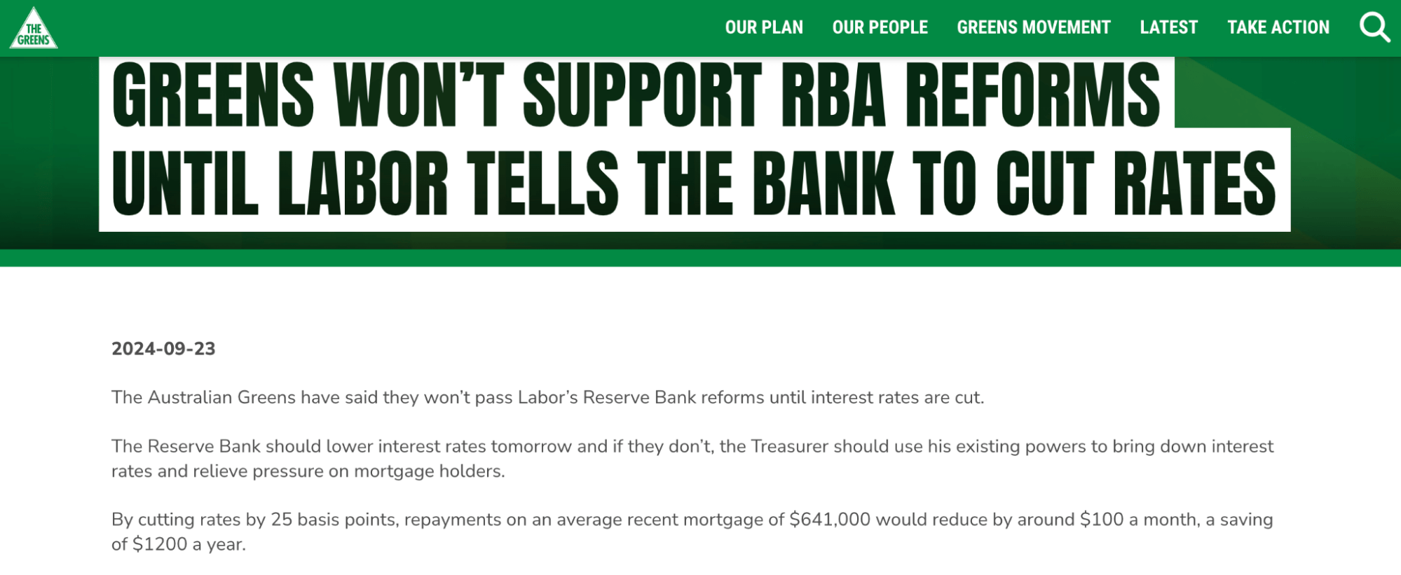 Reform of the Reserve Bank died over the weekend after the Green Party agreed to support the government only if interest rates are cut. It’s possibly one of the more radical political maneuvers of the past few years and highlighted something that was not perhaps widely known. Specifically, that the Reserve Bank legislation allows the Treasurer to overrule the RBA on rates if they want to.