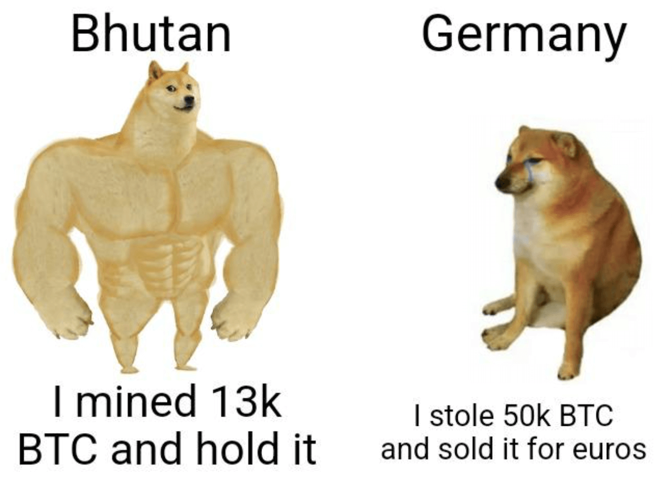 Once the list is refreshed, Bhutan will sit fourth. That will be interesting because the previous inhabitant of that position was Germany. They had over 50,000 bitcoins ($3bn ish) which they dumped in July; which leads us rather nicely to…..