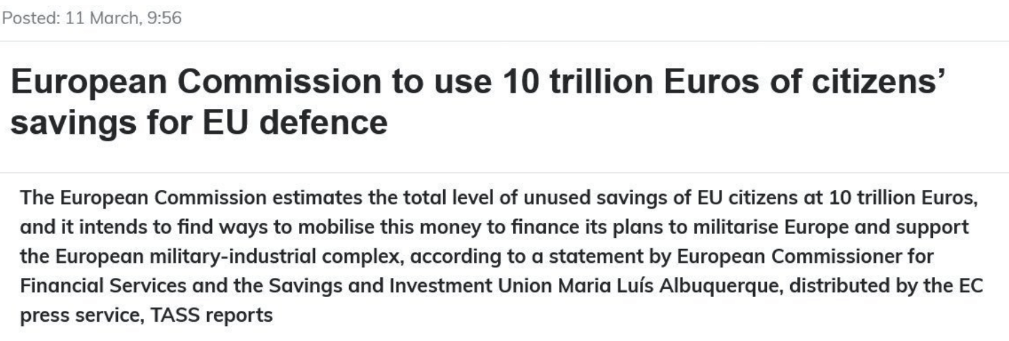 We did cover some weeks back that Europe was going to have to find new and innovative ways to fund its remilitarisation. They have not tried that hard though, simply looking at the pool of money people have saved and said “great, we’ll use that”. I expected a stealthier plan.