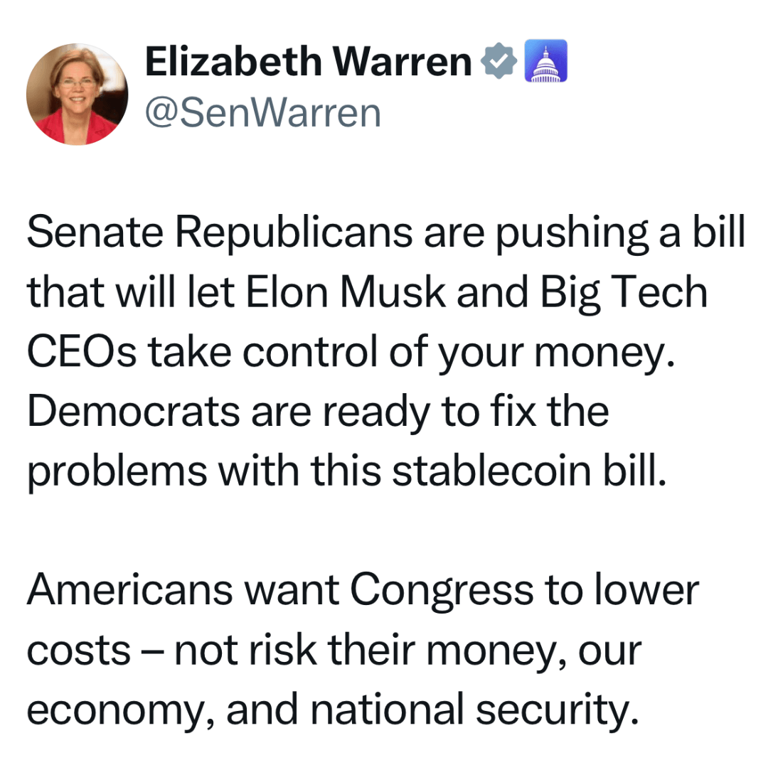 The most interesting feature of the proposal. Most of the current financial system is rehypothecated. In theory the strongest and safest assets will now be stable coins. In fact they will be materially stronger as assets than cash in the bank because on the whole they will be 1:1 backed by US Treasuries and not rehypothecated (i.e. pledged as collateral elsewhere). This point alone explains why banks are so violently opposed to this legislation.