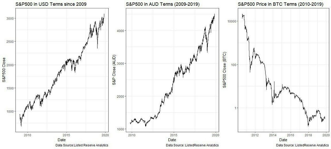 In bitcoin terms though, it is down over 95%. Probably an unfair comparison but the point is — the unit of wealth measurement matters and you might consider using something other than a state issued currency to do it.