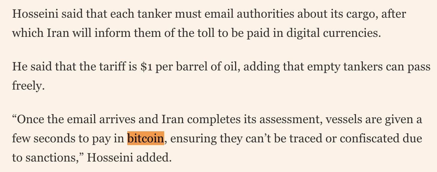 Not entirely cause for celebration that Iran has chosen to seek payment in bitcoin. Still, it’s worth asking the question. Why?